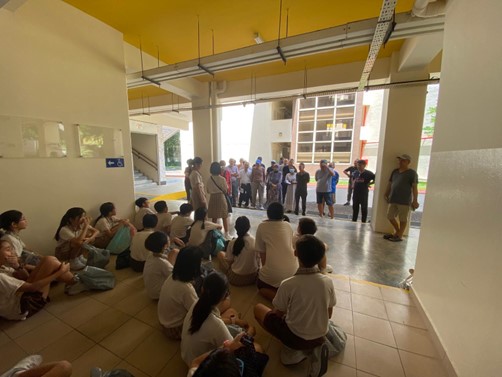 P5 students expressing their thanks to bus uncles and aunties and giving out goody bags to them