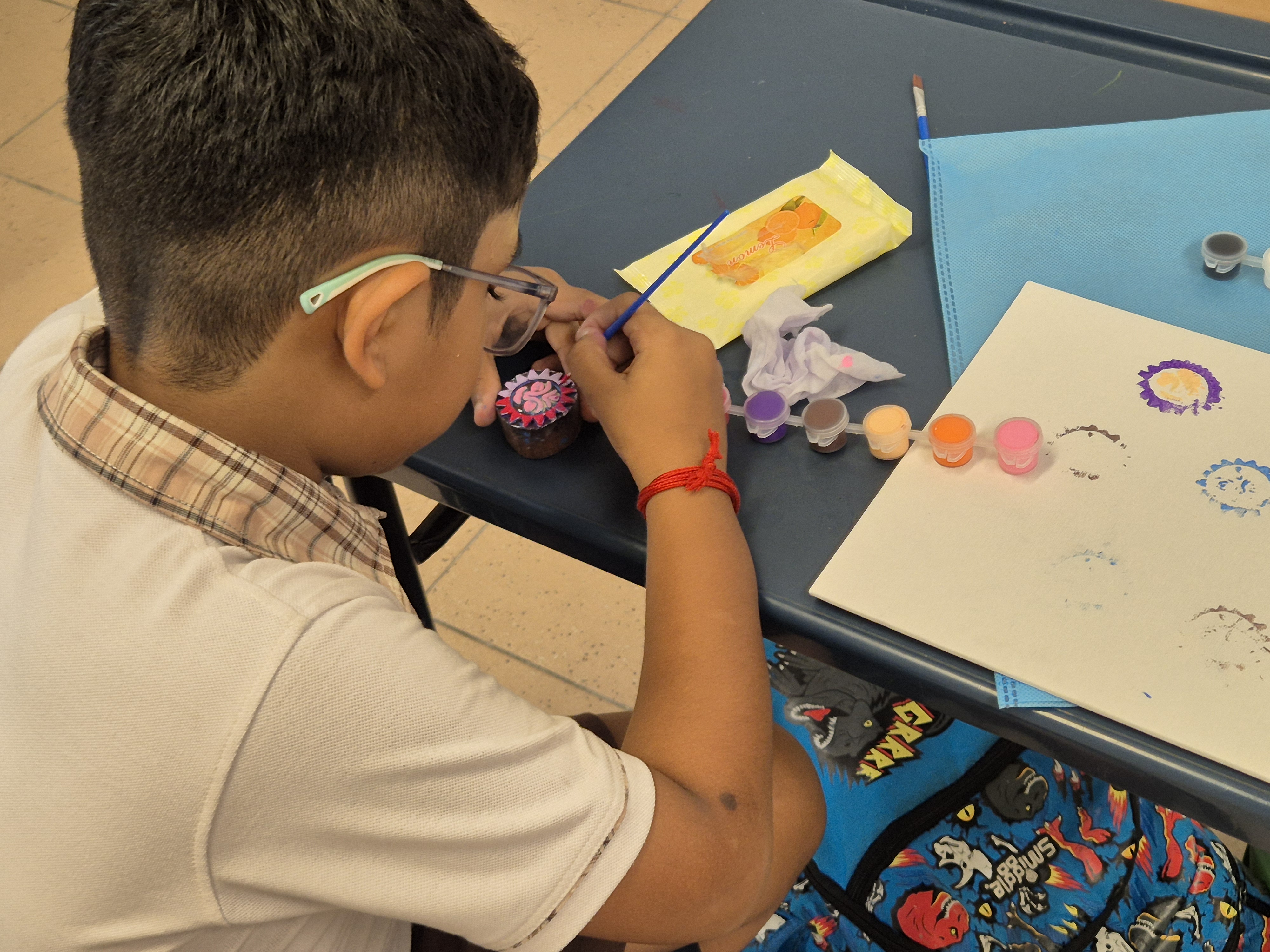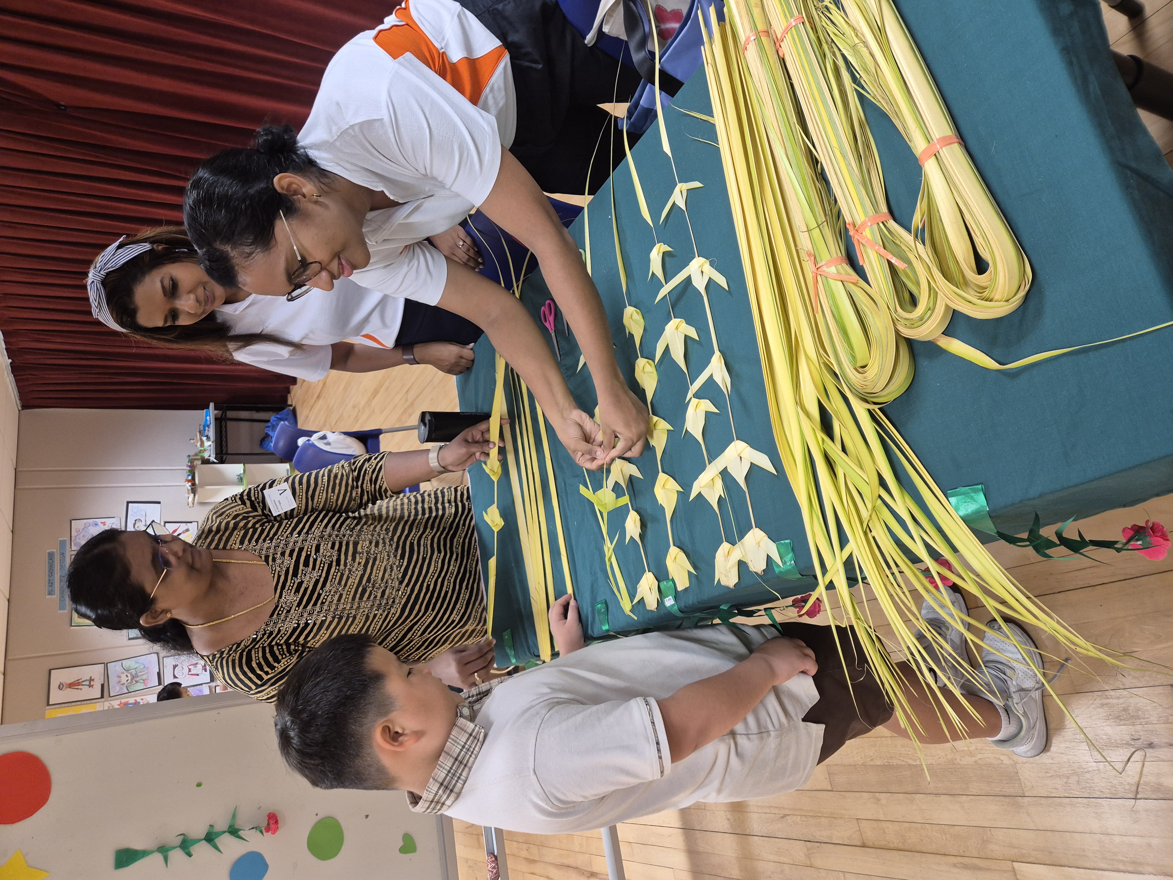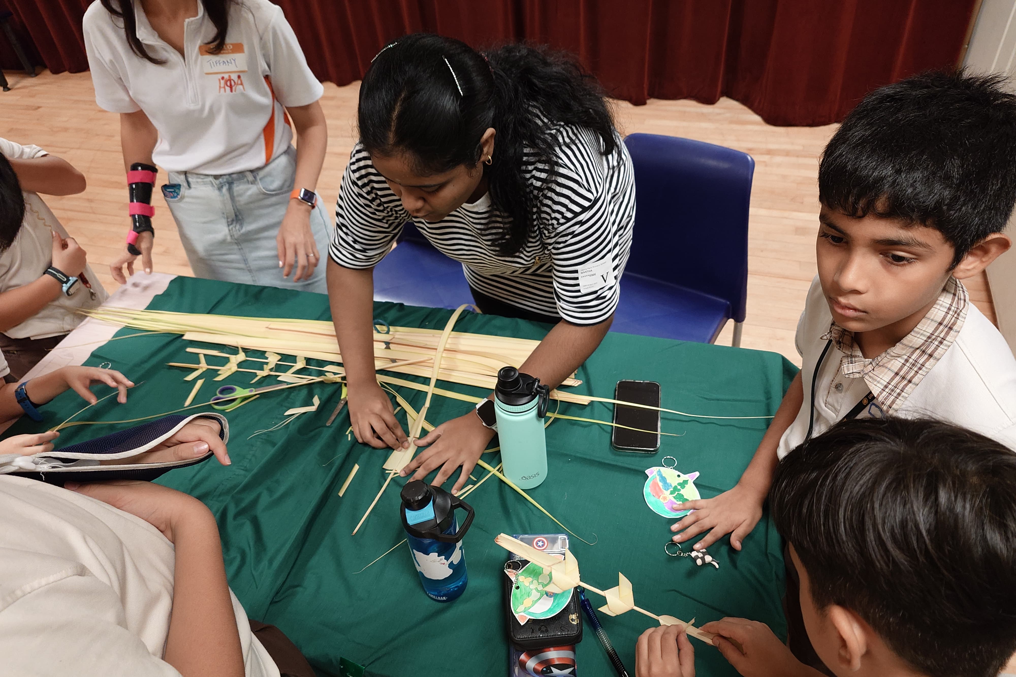 During recess, students were able to visit the Thoranam booth and learned about crafting Thoranams, a traditional décor. The history behind this craft and various types of Thoranams were shown to the students. Students of all races and ethnicities took part in creating these Thoranams themselves and learned about them through experiential learning.